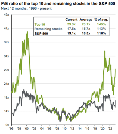 The US large-cap equity market reflects a belief that the Fed’s strategy is working and is pricing in a soft landing, but other economists, investors, and analysts do not agree. Some think that the Fed has already raised rates too high. They argue that it takes time for labor and housing costs to be impacted by rising rates, and once those rate hikes impact those and other costs, it will result in a recession. Others think the opposite: that the Fed will not be able to bring inflation down to its 2% target, and the rate of inflation will exceed the rate of growth despite the Fed’s rate hikes. They argue that there is a structural labor shortage that will keep costs high given the number of workers retiring and the US’ tight immigration policy.