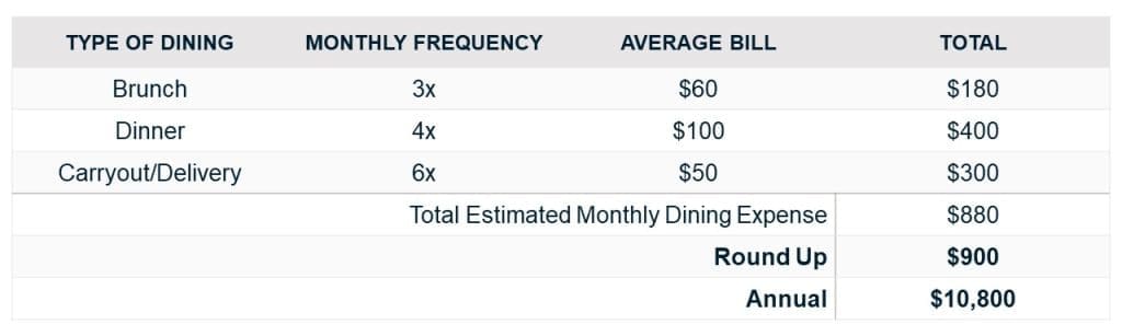 Using dining as an example — try pondering the patterns of your dining experiences. First, estimate how many times in a month you dine out for brunch, and what an average bill comes to. Then, do the same for dinners, carryout, and food delivery. Finally, total the subcategories for dining and round up the figure. Afterwards, you’ll want to begin tracking the accuracy from month-to-month. While the monthly figure will vary, check in after twelve months and see how close you came to your projected annual figure and adjust your projection if necessary. Now identify five variable spending categories you feel the least in touch with and perform this exercise for each. This simple technique will provide insight and add confidence as you work to determine a more specific annual spending forecast.