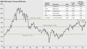 The strong US equity returns in 2019 coupled with relatively weak corporate profitability have resulted in equity valuations above their historical average.