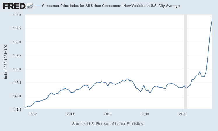 Perhaps the most publicized of these bottlenecks is in new cars, which have been caused, at least in part, by a worldwide scarcity of the computer chips necessary to make them. This shortage coupled with increased demand as the economy rebounded has resulted in soaring prices.