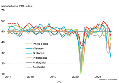 Beyond cars, the spread of the Delta variant in the third quarter of 2021 has exacerbated supply chain issues in many manufactured products, as the spread caused the shut-down of many manufacturing plants in Southeast Asia.
