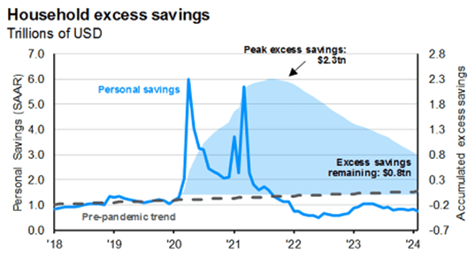 As a result of this stimulus, households have a significant amount of excess savings supporting economic growth.