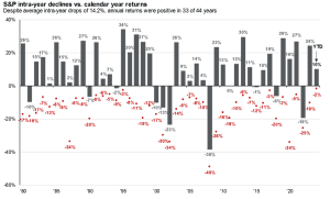 We strongly encourage clients to maintain a diversified portfolio despite the geopolitical uncertainty. Equity markets experience significant drawdowns even in years when equity markets are up substantially.